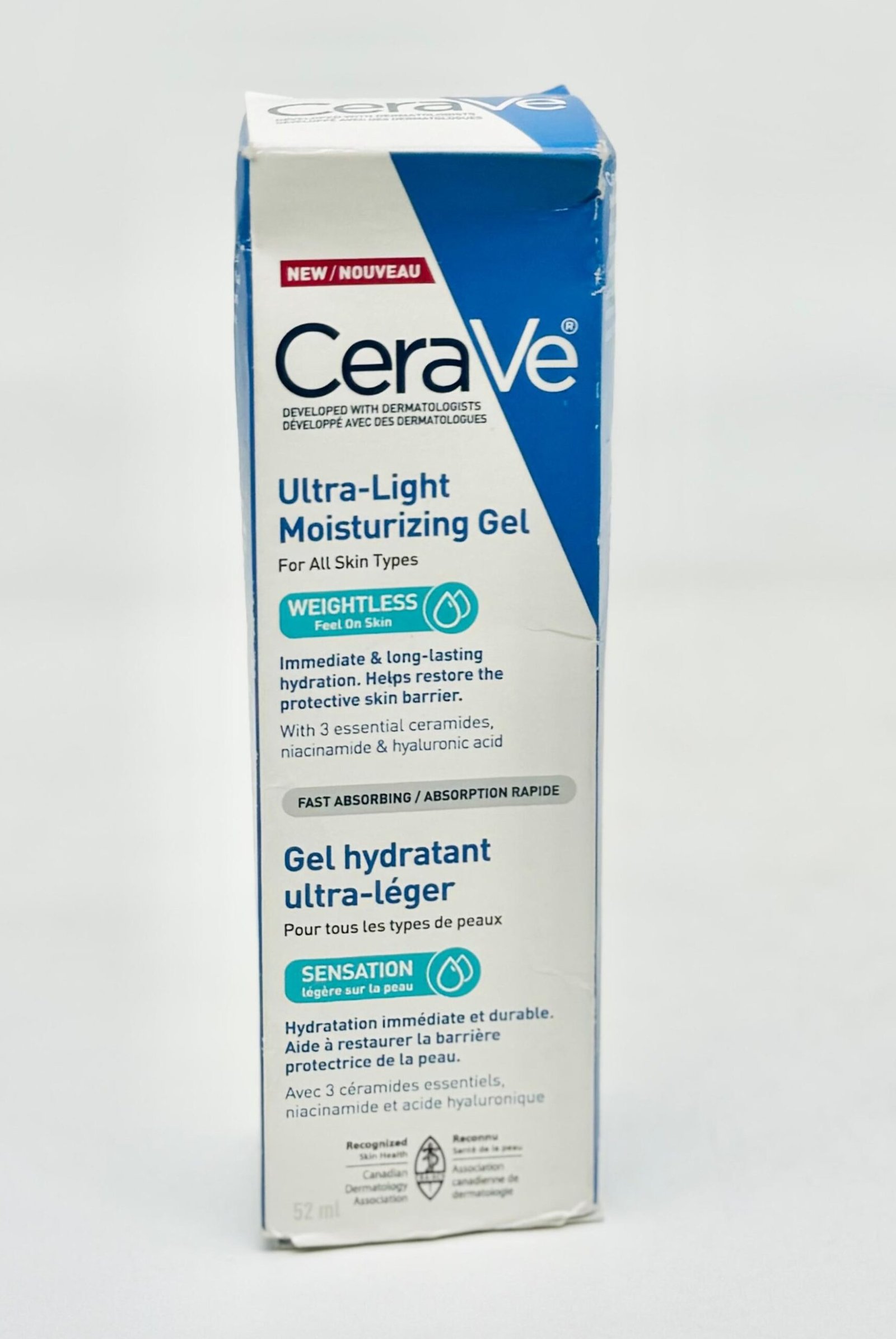 CeraVe Ultra-Light Moisturizing Gel (52ml) is a fast-absorbing, water-based gel that provides all-day hydration for all skin types, especially normal to oily skin. Its oil-free, non-comedogenic formula contains three essential ceramides, hyaluronic acid, and niacinamide to help restore the skin barrier, attract moisture, and calm the skin, leaving a non-greasy, soft finish perfect for use under makeup and sunscreen.
