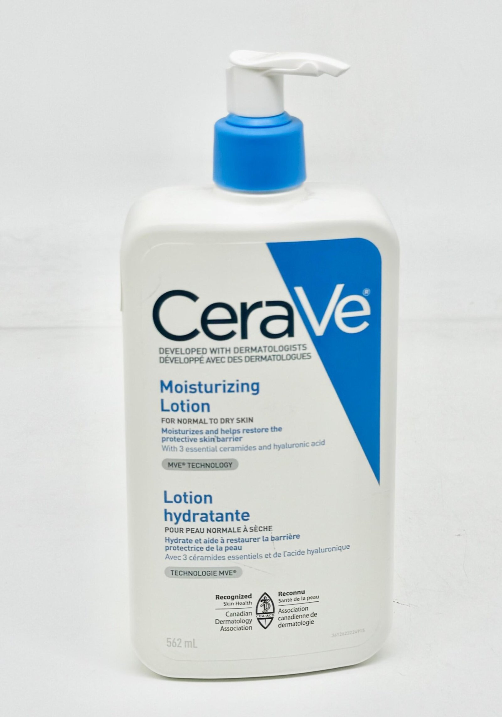 CeraVe Moisturizing Lotion (562ml) is a lightweight, oil-free, and fragrance-free lotion for normal to dry skin that provides 24-hour hydration by restoring the skin’s natural barrier with three essential ceramides and hyaluronic acid. Developed with dermatologists, it uses MVE Technology for sustained ingredient release, is non-comedogenic (won’t clog pores), and can be used on both the face and body.