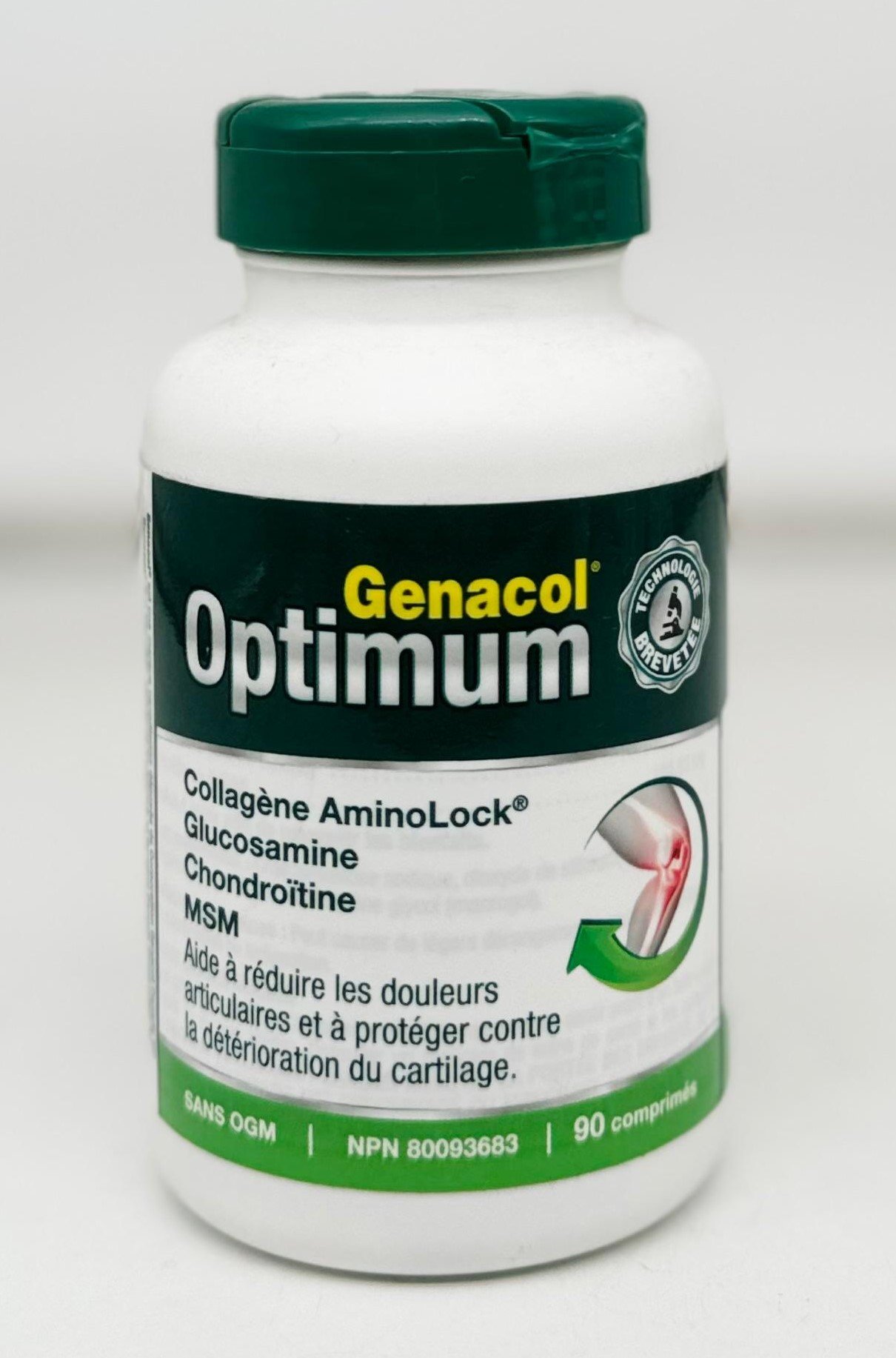 Genacol Optimum is a 4-in-1 joint health supplement in tablet form that contains AminoLock® Collagen along with glucosamine, chondroitin, and methylsulfonylmethane (MSM). The supplement is designed to support cartilage, lubricate joints, and provide relief from joint discomfort associated with osteoarthritis. A 90-tablet bottle provides a 30-day supply, based on the recommended dosage of three tablets per day.