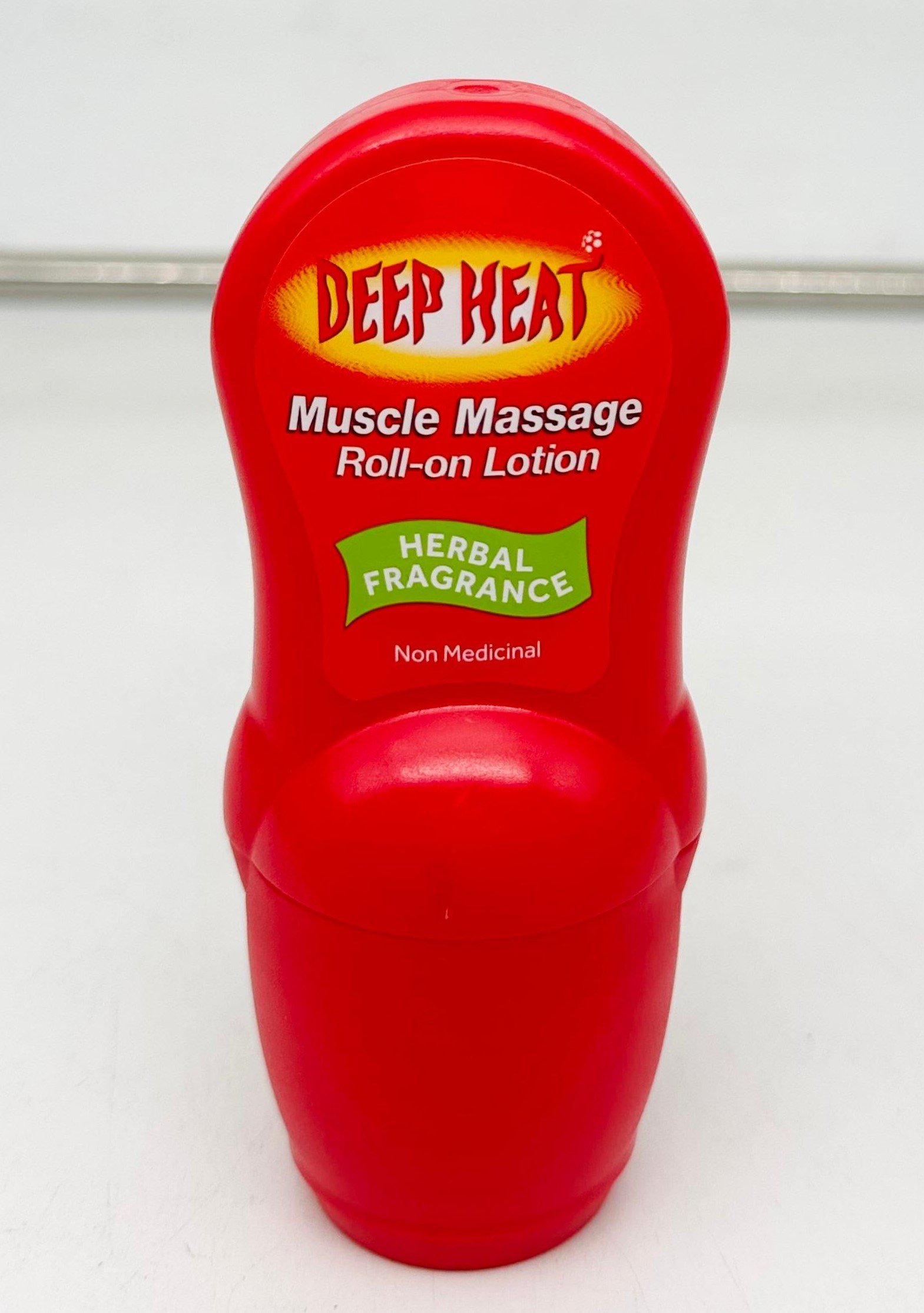 Deep Heat Muscle Massage Roll-On Lotion is a roll-on product with a warming, herbal-scented formula designed to provide targeted relief for sore, tight muscles. It works by gently heating the area to increase blood flow, which helps to relax muscles, ease tension, and improve flexibility, and can be used before or after exercise. The rollerball applicator allows for mess-free and easy application directly onto the affected area.