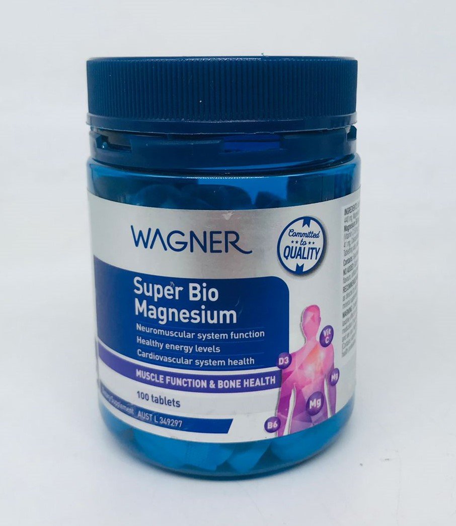 Wagner Super Bio Magnesium 100 tablets is a high-potency supplement for muscle, nerve, bone, and cardiovascular support, containing various magnesium forms (500mg total), Vitamin D3, B6, C, and Manganese. It aids in energy production, enzyme reactions, and bone density. Adults typically take 1 tablet daily.
