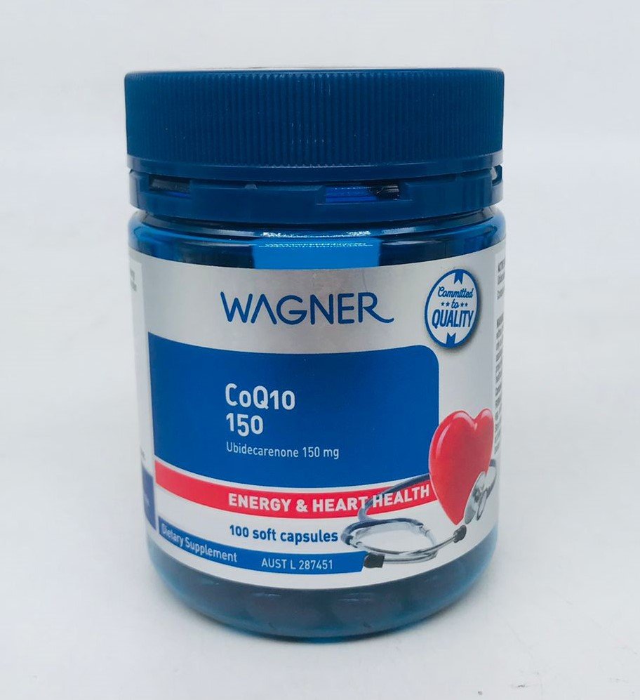 Wagner CoQ10 150mg is a supplement providing 150mg of Coenzyme Q10 to support cardiovascular health, energy production, and antioxidant protection, with levels naturally declining with age. It comes in easy-to-swallow soft gels and is formulated without common allergens like gluten, wheat, and artificial flavors.